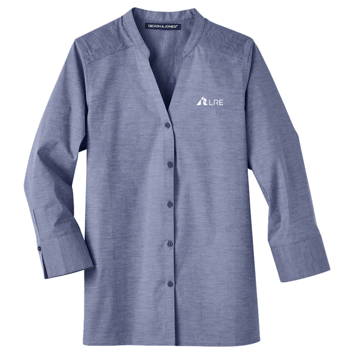 Devon & Jones Ladies' Crown Collection® Stretch Pinpoint Chambray 3/4 Sleeve Blouse